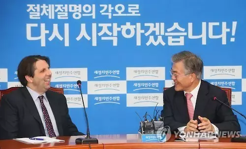 同年6月,文在寅在国会会见时任美国驻韩大使李柏特(特朗普上台后已离职)。韩联社援引新政治民主联合首席发言人金瑛录的话说,两人会谈时指出,韩美公开讨论在韩部署萨德事宜,为时过早。
