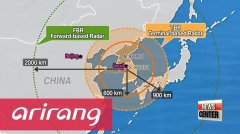 资料图:图为韩国阿里郎电视台(Arirang TV)英文报道的美国萨德反导系统的核心单元AN/TPY-2有源相控阵雷达的末段部署模式( TBM)(黄色线)和前沿...