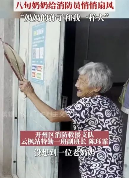 奶奶边扇边说:“这个消防员,年纪和我孙子一样大”