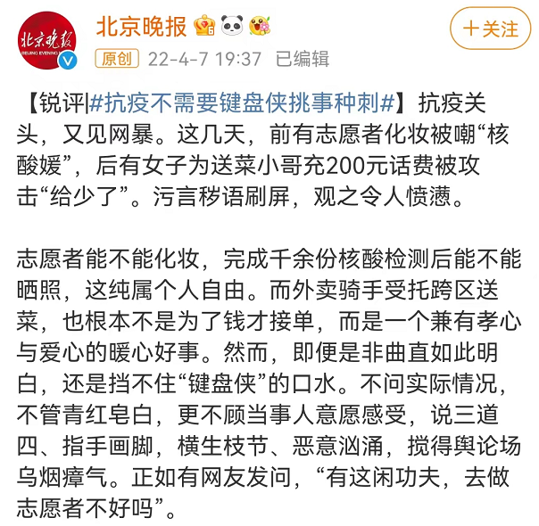 抗疫关头之下,疫情真的不需要这些事来挑刺。如果女孩真的是蹭热点的缘故被封号,那么表姐要说一句大快人心。