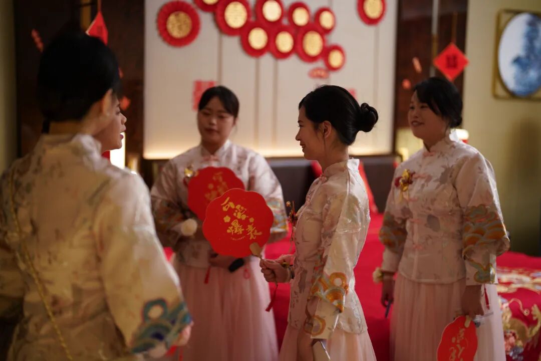新娘说她和她老公是在相亲中认识的,在父母和现实压力的催促下,觉得合适就同意了结婚。