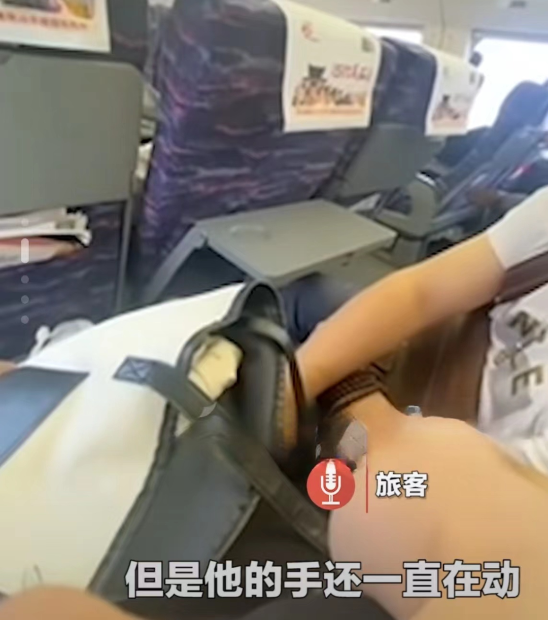 意识到这件事并非简单触碰到那么简单后,该女子先是醒来把邻座男子放在自己身上的手放回了男子自己身上,然后自己往窗户边又靠了靠。