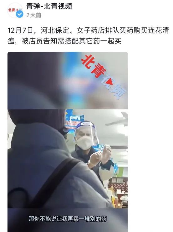 除了“捆绑销售”,早在几天前就有网友称:连花清瘟早已不是当年的价格了。原本一盒售价才10几块钱的药,到现在可以几倍售出。在厦门某药店,标价23元的连花清瘟,实际售出则需要48元。某线上药店,连花清瘟的售价竟然高达129元,是平时的十倍。某些地方因为市民的囤货热情高涨,商家仅仅一天,涨了三次价格。