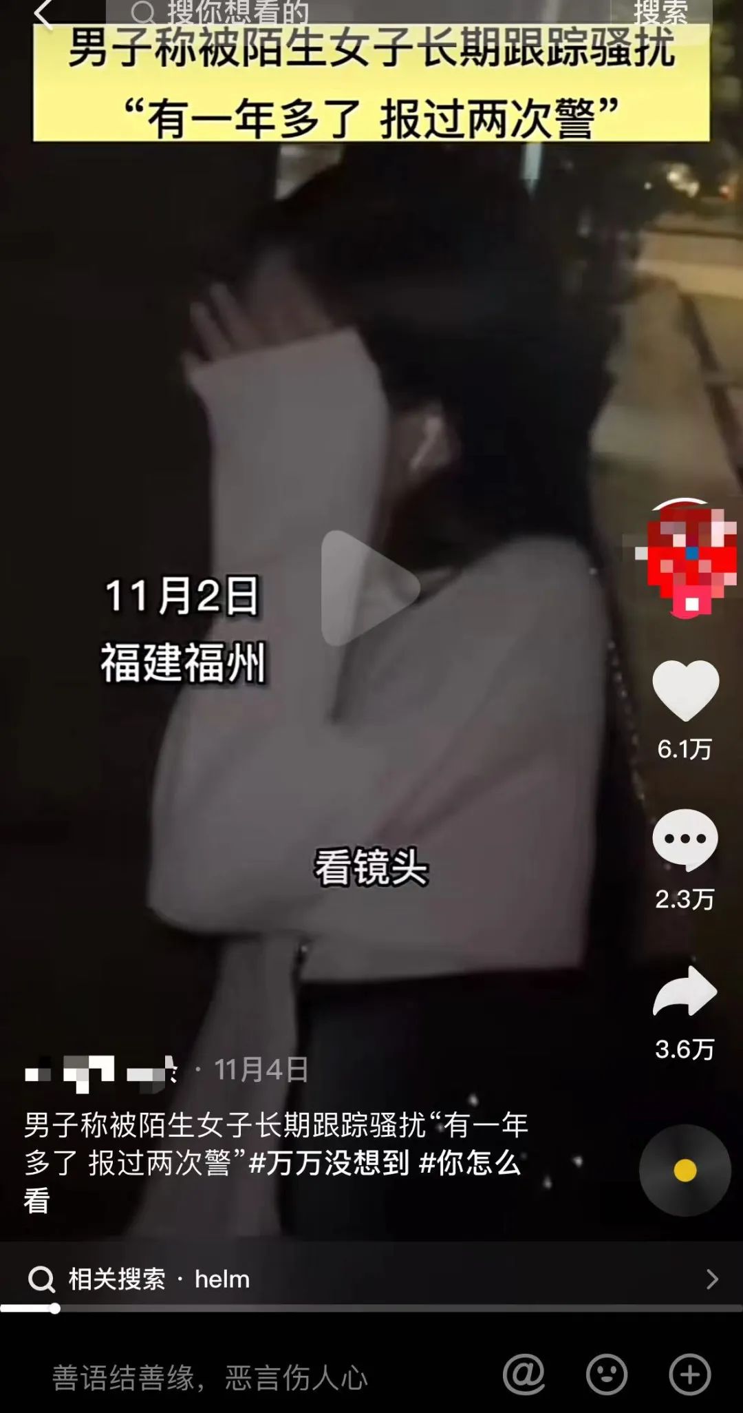 在近期的一些新闻里,“福建某男子遭陌生女子深夜多次跟踪”占据过一段时间的热搜。